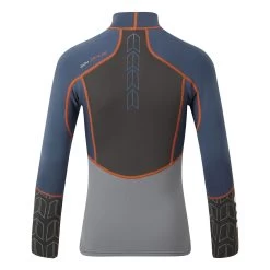 The ZenLite top is the ultimate lightweight solution. The Junior ZenLite top has grips at the wrist and a glideskin neck seal that is soft and comfortable. The 1.5mm neoprene has 4-way stretch to allow a full range of movement, and also to give a skin-tight fit to prevent water ingress. The ocean blue colouring is accentuated by orange flatlocked stitching and a stylish print.